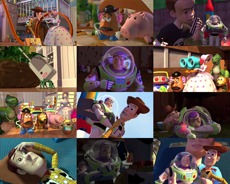 Toy Story takes place in a world where toys come to life when people are not around and, in the story, we focus on a group of toys owned a kid named Andy.  Andy is a kid with a wild imagination and loves to create all kinds of pretend stories by using his toys such as a Mr. Potato Head (Voiced by the late Don Rickles), a green T-Rex named Rex (Voiced by Wallace Shawn), a piggy bank named Hamm (voiced by John Ratzenburger), a porelain figurine named Bo Peep (Voiced by Annie Potts), a dog shaped slinky named Slinky Dog (Voiced by the late Jim Varney), and cowboy doll named Woody (Voiced by Tom Hanks).  Woody is Andy’s favorite toy and is considered the leader as he coordinates the toys’ safety and times where they can move around when Andy is not present.  On what seems to be a normal morning of playtime, Woody finds out that Andy is having his birthday party early as the family is about to move into a new house in about a week.  Birthdays are very nerve-racking for the toys as they fear of being replaced or shelved, though Woody is not as worried about it since he is considered Andy’s favorite toy, unbeknownst to him that is all about to change when Andy receives a new toy as a surprise gift.  Woody and the gang meet the new toy, a Space Ranger known as Buzz Lightyear (Voiced by Tim Allen) who has a huge number of features such as “karate chop” action and can extend wings that he believes can allow him to fly.  It is one thing to note that Buzz, even though he is just a toy, believes that he is a real space ranger that has crash landed on earth and works to try to repair his “spaceship,” while bonding with the new toys.  Andy loves his new Buzz Lightyear that he starts to not play with Woody as much and that makes Woody very much envious to the point that on one uneventful evening, he tries to knock Buzz back behind a desk when Andy is allowed to take one toy before they go to Pizza Planet, and accidentally launches Buzz out a window and into a bush outside of Andy’s house.  Andy’s other toys take great offense at what just happened and simply believe that Woody killed Buzz.  They try to kill Woody but are interrupted when Andy comes back to pick up Buzz but is forced to pick up Woody instead as he can’t find Buzz.  At a stop at a Dinoco Gas Station, Woody discovers that Buzz has stowed away on the family van’s roof and is dragged under the van by Buzz where they fight each other before they witness Andy and his family drive away, making Woody and Buzz lost toys.  From there, it is a race against time for Woody and Buzz as they must resolve their rivalry and work together to get back home before Andy’s family moves away and they must go through dangerous obstacles, such as a next door neighbor kid named Sid Phillips who loves to torture toys, in order to get back home.